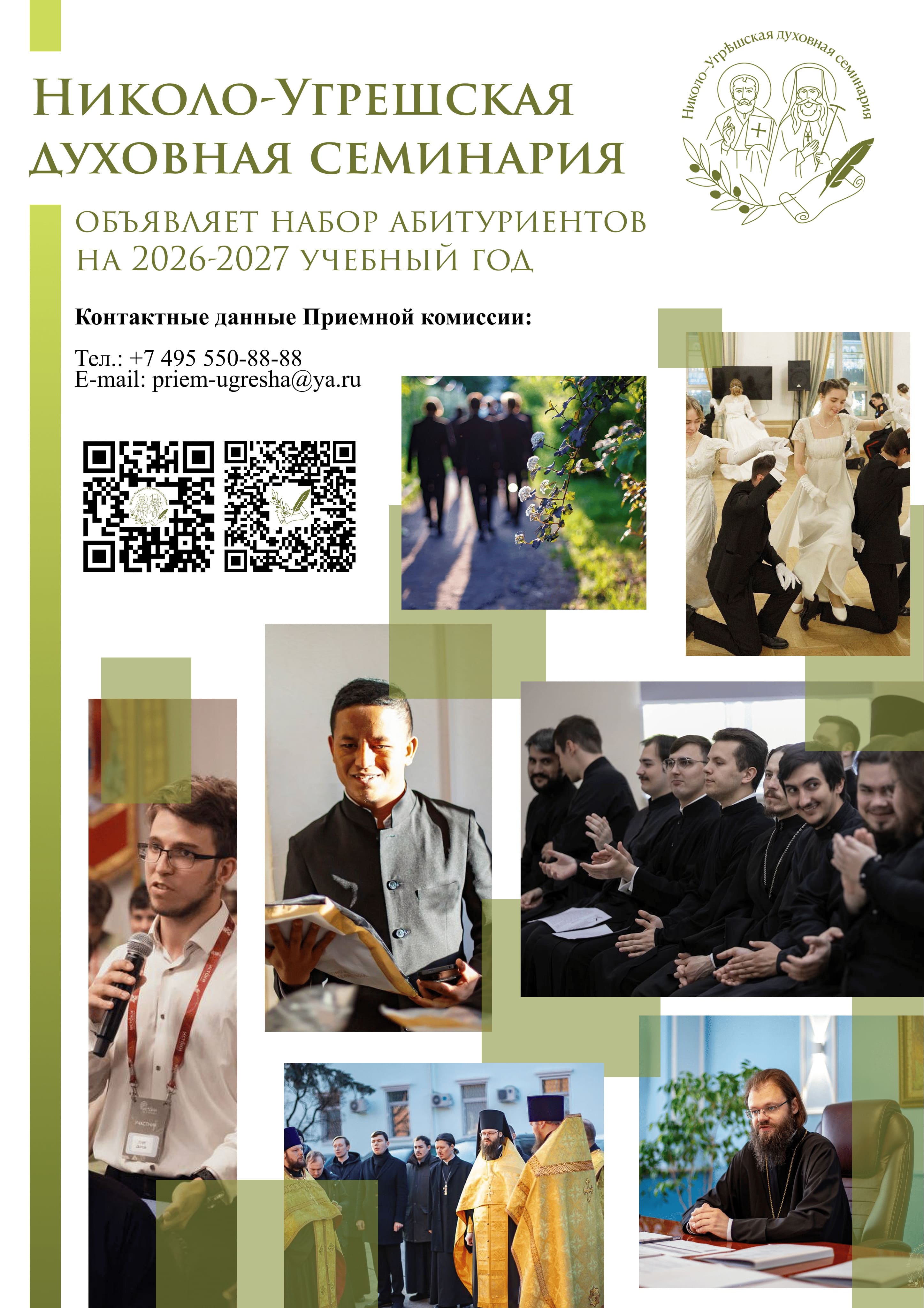 Николо-Угрешская духовная семинария объявляет набор абитуриентов на 2026-2027 учебный год.