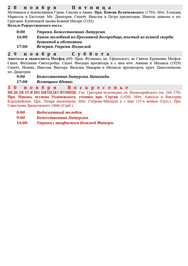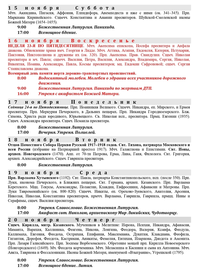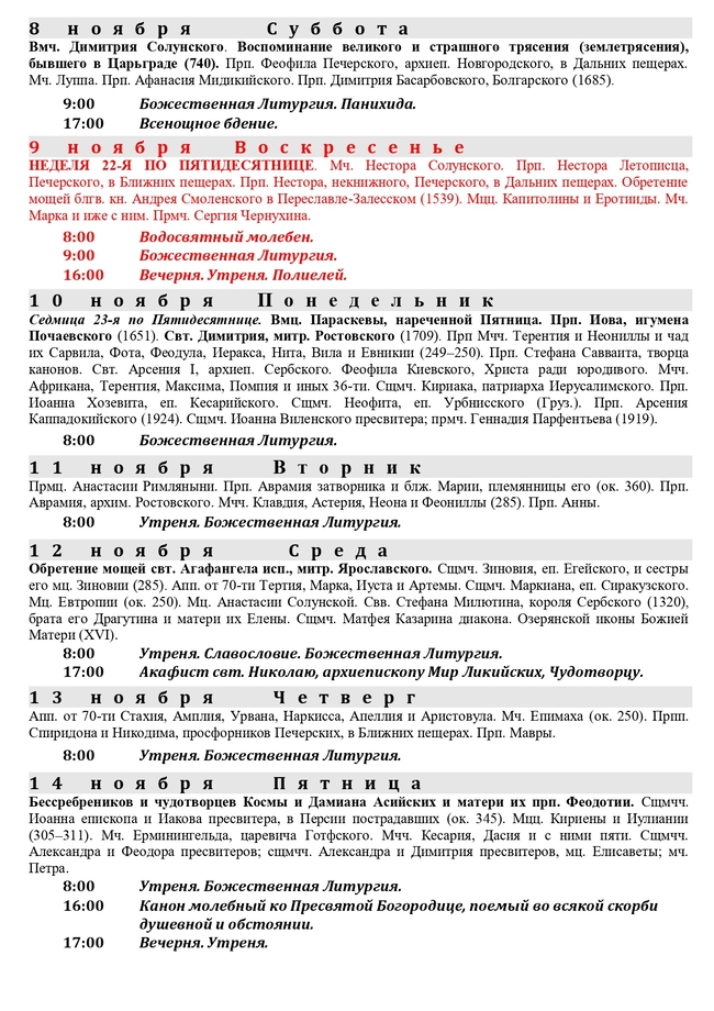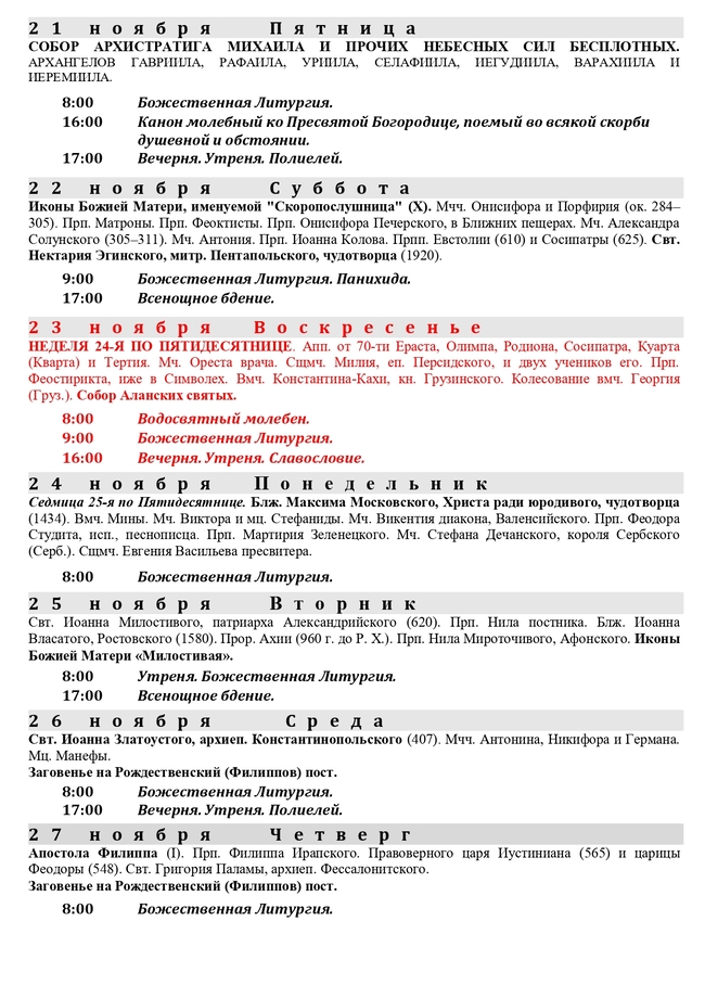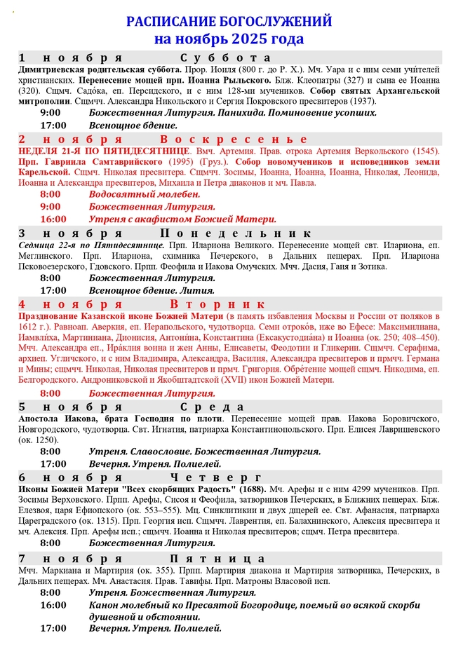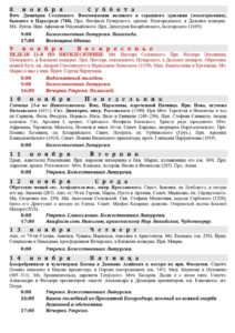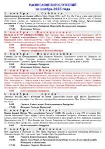 Расписание богослужений на ноябрь 2025